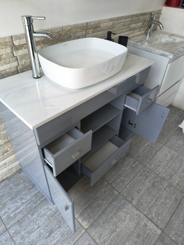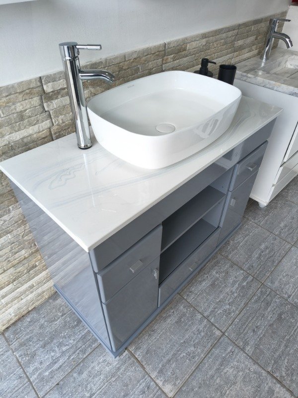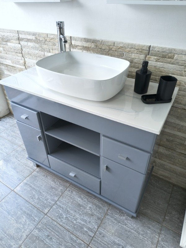 🥇 Vanitory 100 cm Gris con Bacha de Apoyo y Tapa de Porcellanato Líquido