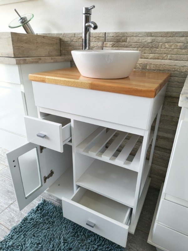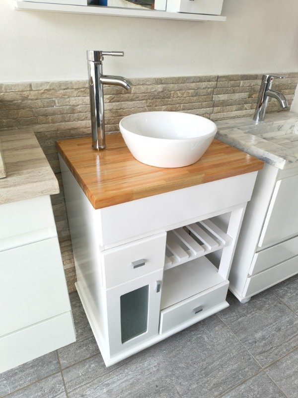 🥇 Vanitory 60 cm Laqueado Blanco con Bacha de Loza