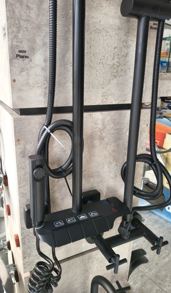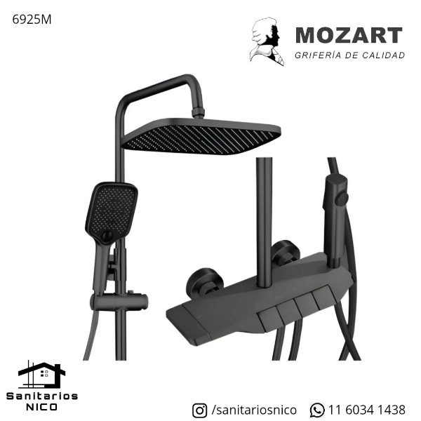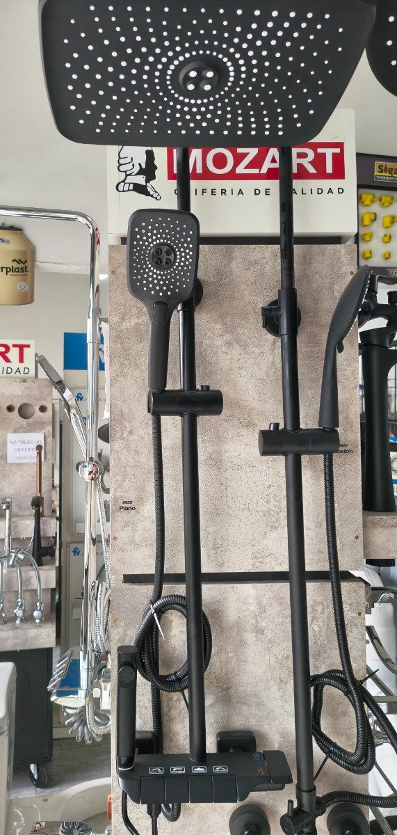 💦 Columna de Ducha Exterior con Duchador Mozart Negra Mate