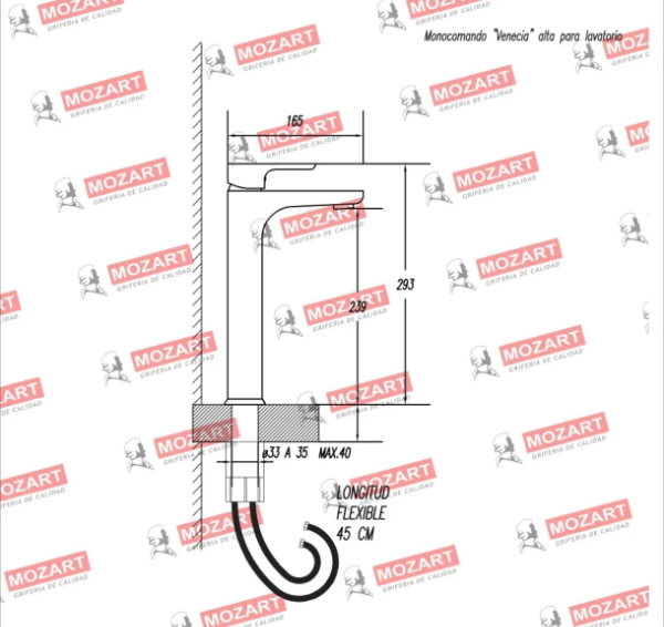🚿 Grifería Mozart Venecia – Lavatorio Alto | Monocomando | Acero Inoxidable