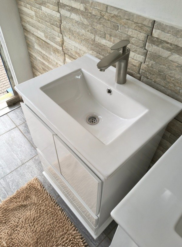 🚿 Vanitory 50x40 Blanco Laqueado con Bacha de Loza Premium