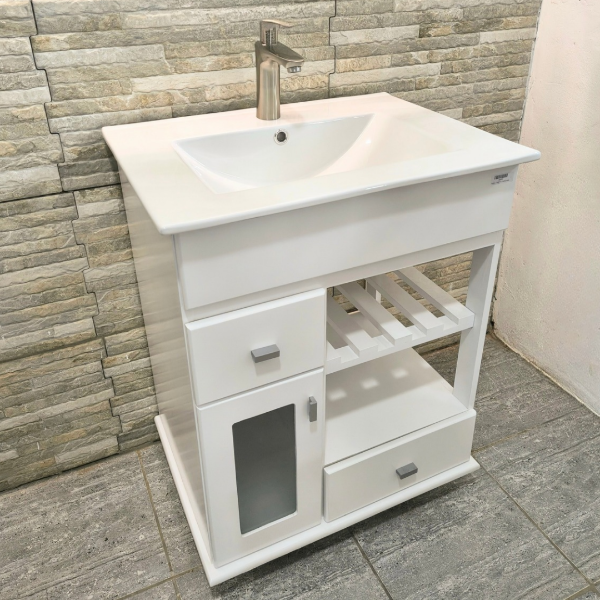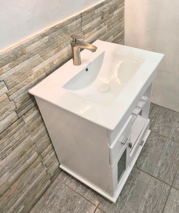 🚿 Vanitory 60x46 blanco laqueado con bacha de loza