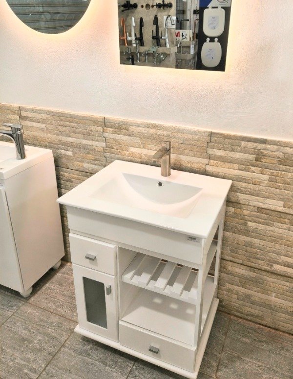 Elegí un vanitory moderno, funcional y súper resistente para renovar tu baño con estilo. Este modelo de 60 x 46 cm está fabricado en madera laqueada antihumedad, con terminaciones impecables y un diseño pensado para aprovechar cada espacio.