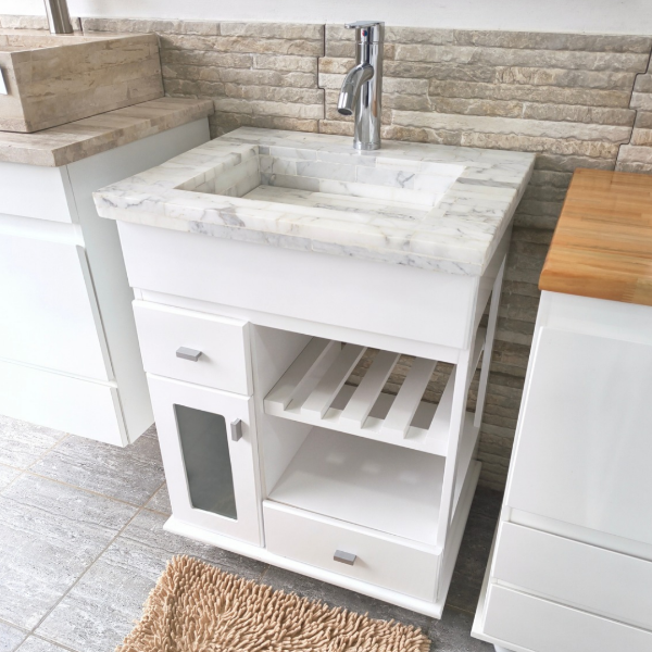🚿 Vanitory 60x46 blanco laqueado con bacha de mármol carrara
