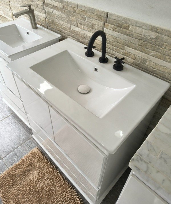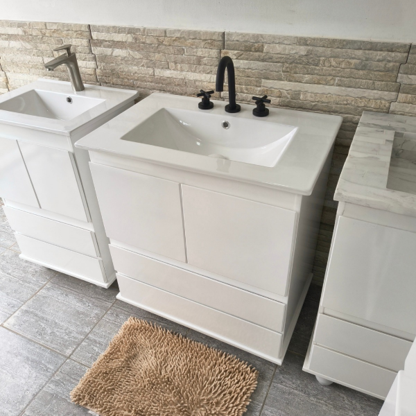 🚿 Vanitory 70x40 Blanco Laqueado con Bacha de Loza