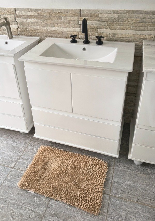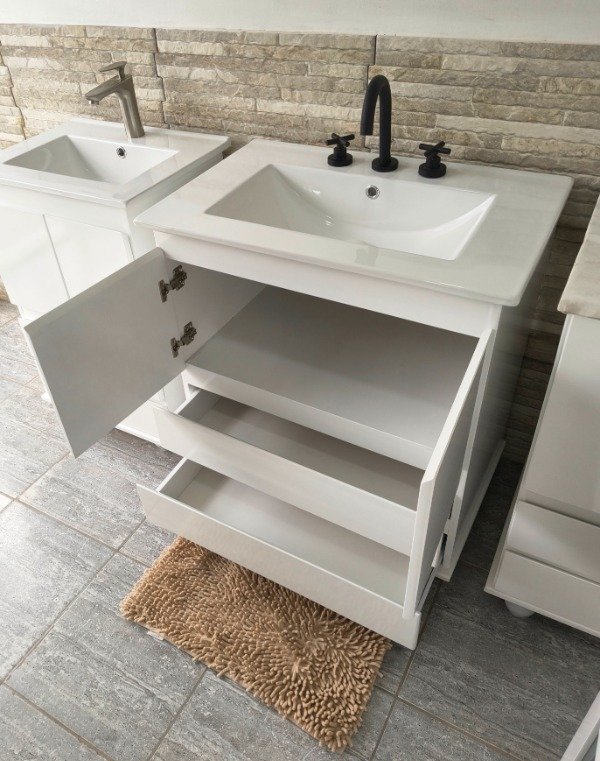 Vanitory de 70 x 40 cm fabricado en madera laqueada color blanco, con un diseño moderno, funcional y resistente a la humedad.