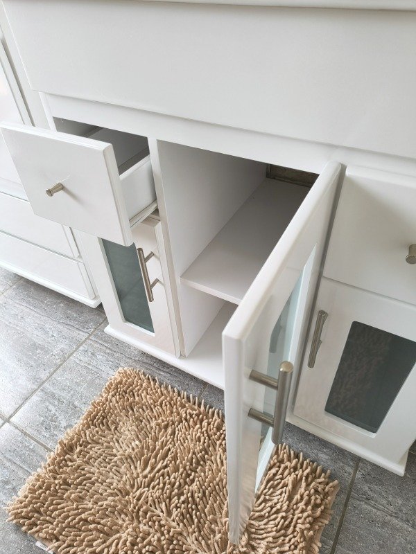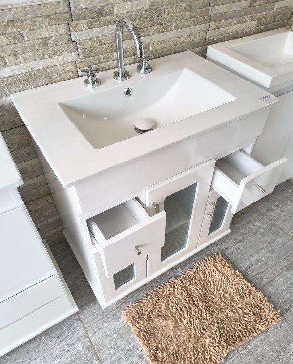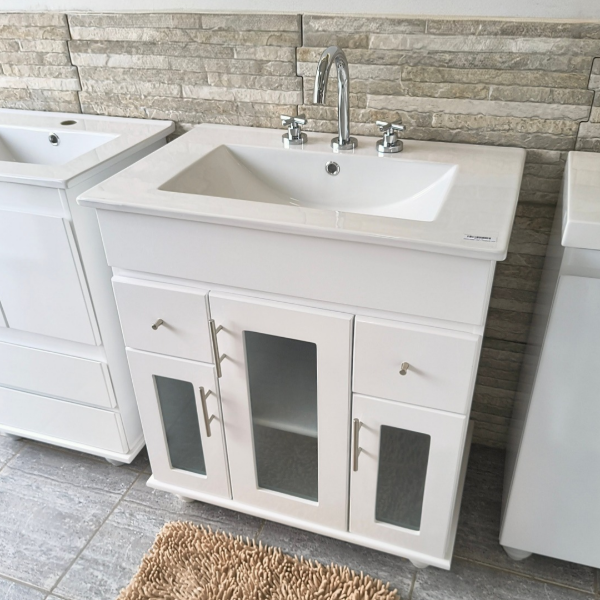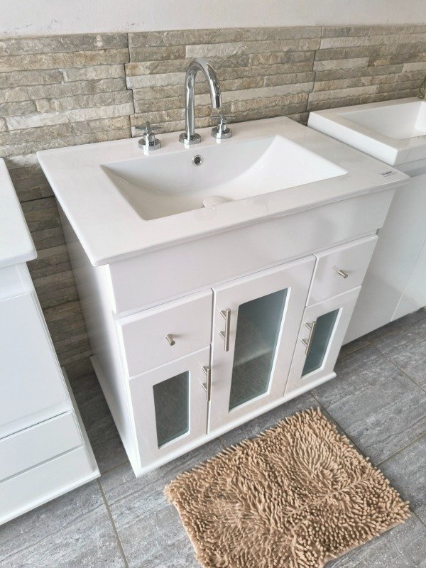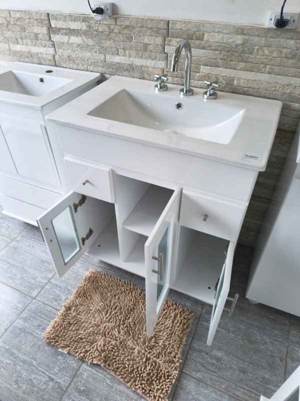 Fabricado en MDF laqueado de alta resistencia, está disponible en color blanco y cuenta con bacha de loza, con opción de 1 o 3 agujeros según la grifería que prefieras. Su diseño incluye 3 puertas vidriadas y 2 cajones espaciosos, brindando funcionalidad y organización en un solo mueble.