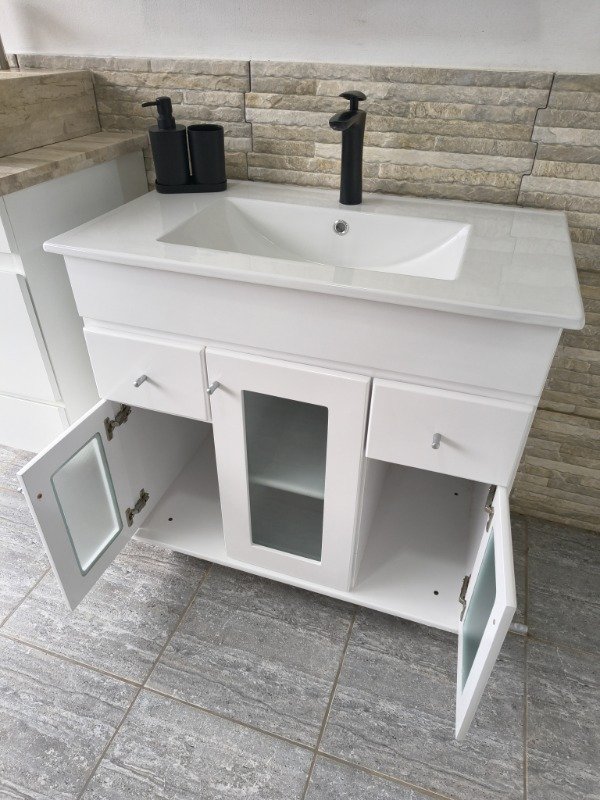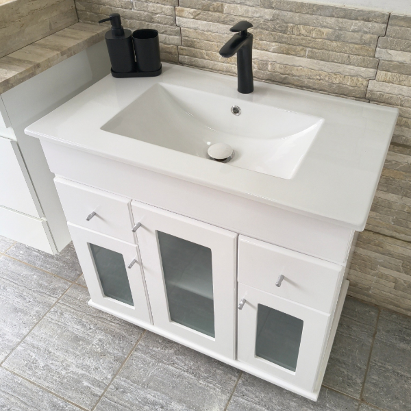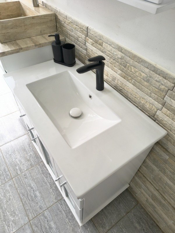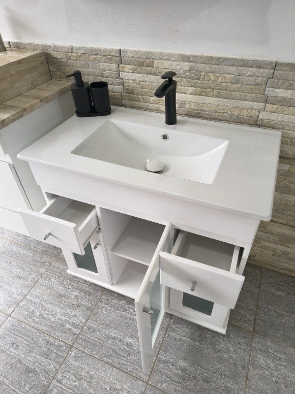 🚿 Vanitory 80x46 blanco laqueado con Bacha de loza premium
